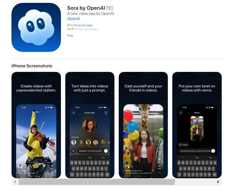 According to estimates from Appfigures, the iOS version of Sora reached a total of 164,000 downloads within just two days of release, with 56,000 downloads on launch day alone. (Image caption: App Store screenshot)