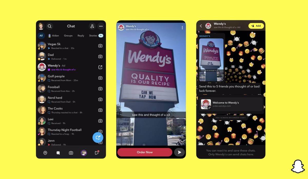 Liang Chen illustrates brand-user connection with a Snapchat example: U.S. fast-food chain Wendy’s ran multiple video ads promoting different meal combos, but the best-performing content on Snapchat turned out to be a single image reading: ‘saw this and thought of u’