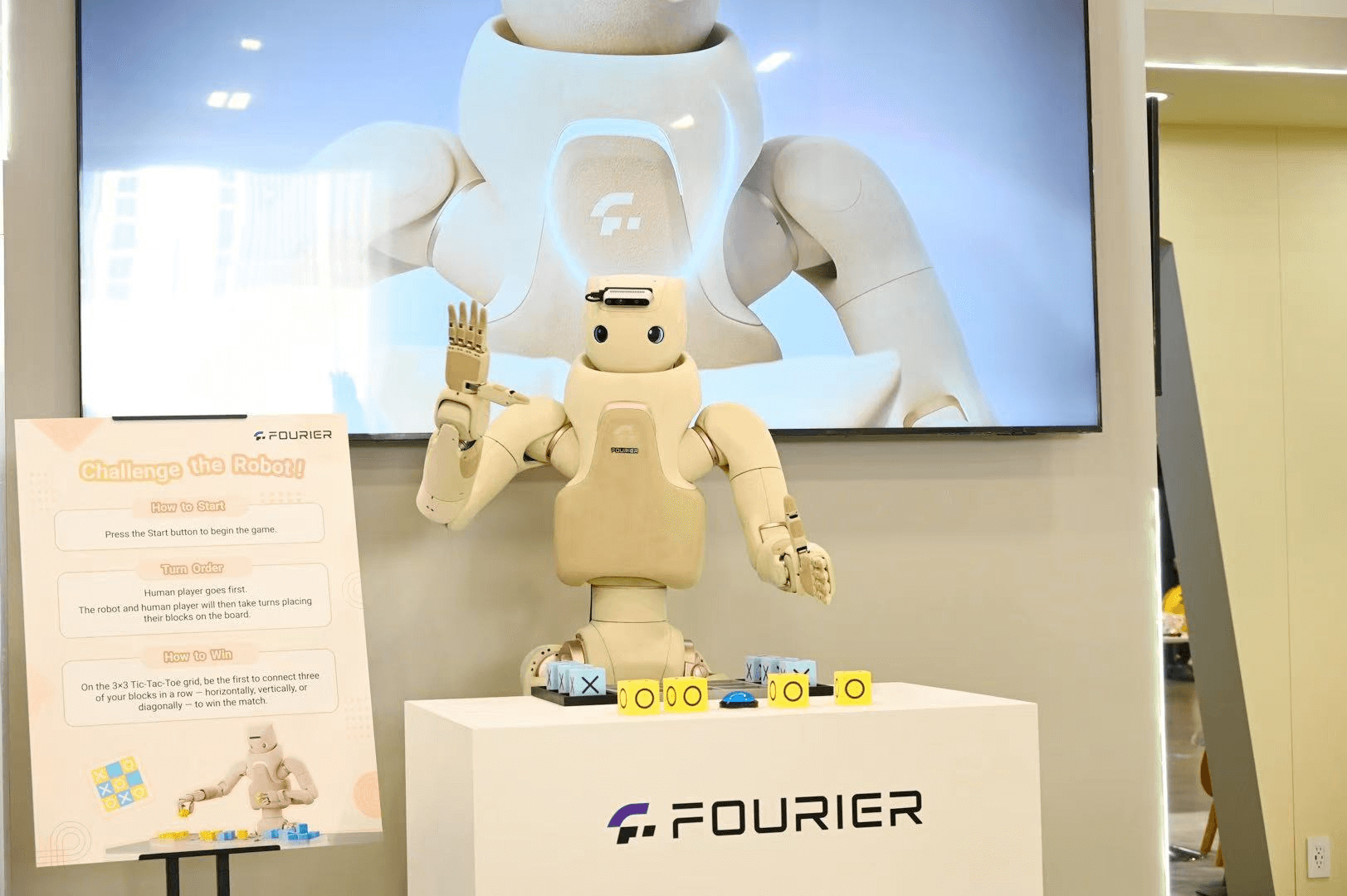 An interactive experience zone was set up at the booth, inviting visitors to engage with the robot at close range. With its natural conversational abilities and emotionally expressive interactions, GR-3 quickly became a highlight of the exhibition, drawing large crowds for conversations, hands-on experiences, and photo opportunities. A specially designed human–robot tic-tac-toe challenge further demonstrated GR-3’s capabilities: using visual perception to recognize the board state in real time, the robot combined logical reasoning with facial expressions, voice, and body movements to deliver anthropomorphic responses to every move, creating an interaction that was both engaging and emotionally warm.